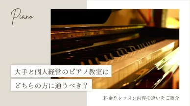 悩み解決 大手と個人経営のピアノ教室を比較!料金やレッスンの違いを徹底解説 ピアノ教室の大手と個人の違いについてご紹介!意外と知らないそれぞれの教室の概要からメリット・デメリットまで徹底解説しています。記事の後半には、自分に合った教室が分からない方のために、タイプ別で大手と個人のどちらがおすすめなのかをご紹介! 2022.11.24 悩み解決